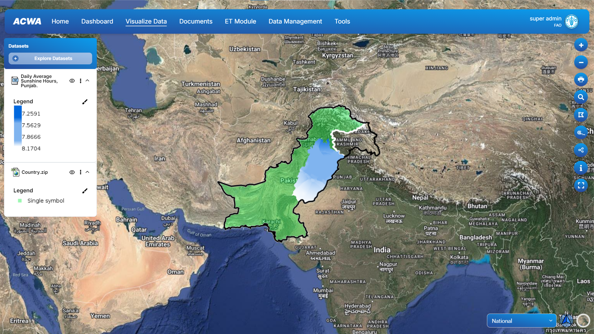 The ACWA (Agriculture, Climate, Water) portal is a Web-based GIS information System that provides institutional stakeholders with reliable and up-to-date information of the Indus Basin to support decisions.